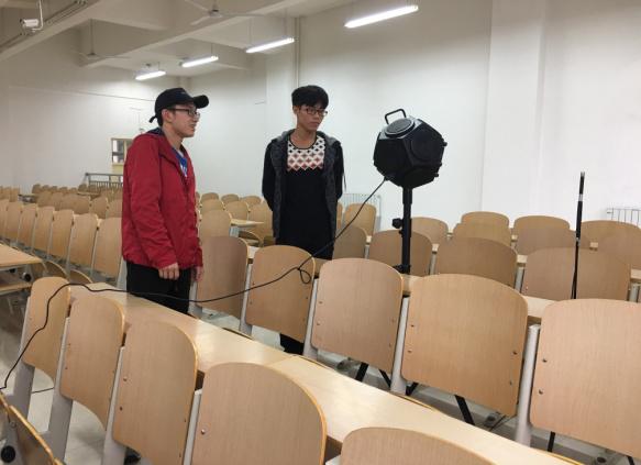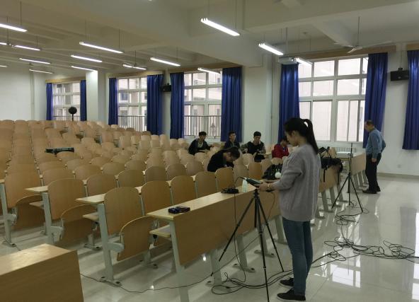 2017年10月14日下午,在成人抖音 李国华副教授的带领下,四名研究生与十余名大二学生对渭水校区鸿远楼1101、1103两间多媒体教室进行了现场声学测试。测试内容主要包括两个多媒体教室的语言清晰度、混响时间、背景噪声等项目,这次实验旨在寻找针对在多媒体教室学生上课注意力不集中及学生反映在教室后部空间听不清等问题的原因。同时,通过此次测试使学生可以亲身感受其中,增强他们对建筑声学科研的热爱。