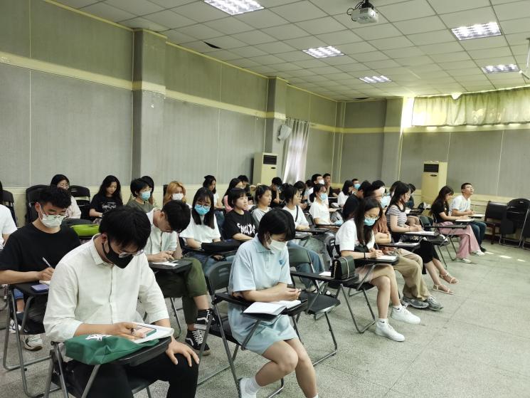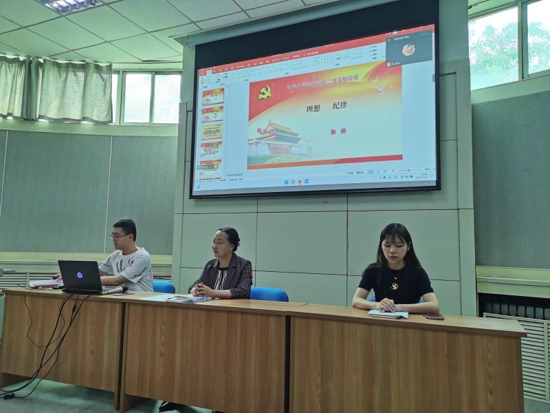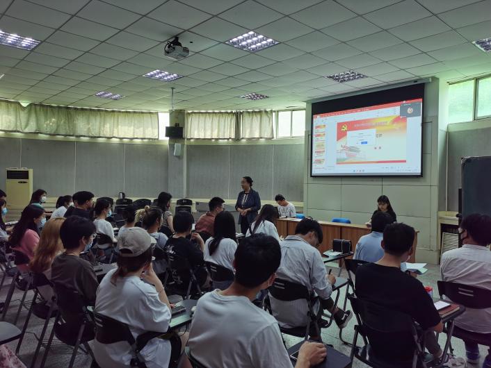 2022年5月26日上午,在建筑馆二楼半圆报告厅召开研究生党员干部培训大会,成人抖音 党委副书记张侠,学办副主任洪诗迪、辅导员郑依依及成人抖音 一、二、三支部全体成员线上、线下参加了这次会议。