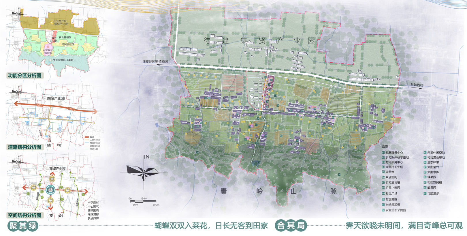 The work takes Dianzhen Village, Jixian Town, Zhouzhi County as the main planning object. Based on the unique Taoist heritage in the village, the work uses the Taoist concept of "comparing gains and losses", from the four aspects of "production, life, ecology" and its counterpoint in space. From this perspective, analyze the gains and losses of Dianzhen Village, and conduct strategic guidance respectively. In terms of ecology, we will create a green village with clear mountains and green mountains; in terms of life, we will create a livable village that is suitable for the old and benefit the people; in terms of production, we will create a leisure village for health, culture and tourism; finally, we will form a beautiful rural village in space, and explore a new way of life in the new The characteristic road of rural revitalization of the times.