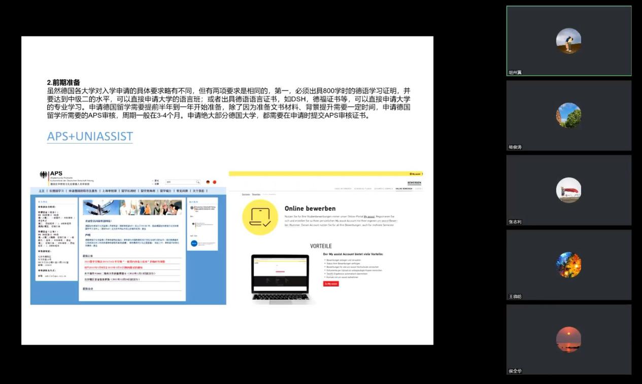 2011级校友胡州翼以德国留学经历为汇报主线,从德国留学申请(流程介绍、留学准备、院校介绍)、德国规划介绍及与国内规划异同、工作心得三大方面详细深入的讲解了留学德国的收获与建议。一方面胡周翼校友为有出国打算的学弟学妹解答了留学相关困惑,另一方面胡周翼校友以德国学科发展为切入点,深入浅出的国外规划知识体系及前沿理论的介绍,让大家耳目一新。胡周翼校友建议在校学弟学妹多参与实习,从实践中收获成长。