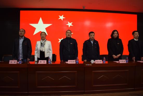 大会在庄严肃穆的国歌声中拉开序幕,全体起立,奏唱中华人民共和国国歌。