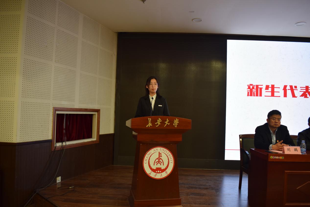 郭佳学姐以“过来人”的身份向学弟学妹讲述如何适应大学生活的学习和生活节奏,如何做好一名长大人,答案是:坚持远大抱负与脚踏实地相统一。要立大志、敢创新、有梦想;要致广大而尽精微有本领;要与国同行,为人民奉献。发言最后,郭佳祝福学弟学妹们,不负过往,拼搏现在,成就未来。