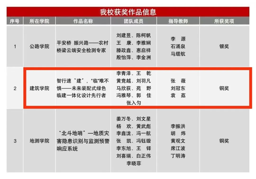我校报送的作品《智行速“建”,“临”难不惧——未来装配式绿色临建一体化设计先行者》荣获全国终审决赛铜奖。该作品由我校成人抖音 李青泽、王乾、黄竞越、刘羽凡、马欣荻、苑野、冯雅琴、郭佳、张入匀同学完成,指导老师为张薇、刘冠东、袁荔。自2022年刘勇教授竞赛团队在“挑战杯”比赛获国家一等奖后,再次获得国家级奖项!