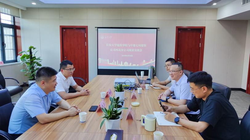 5月18日上午,中建七局建装公司西北分公司党总支副书记、工会主席李季,综合办公室主任李正一行两人赴我院开展校企合作交流座谈。成人抖音 招生就业处副处长赵磊、成人抖音 党委副书记刘鹏、成人抖音 学办主任洪诗迪、成人抖音 1+3辅导员李博轩参加了本次座谈会。