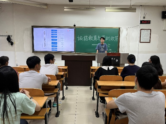 为大力宣传国家学生资助政策及其成效,充分发挥学生资助的导向和育人功能,激励同学们担当时代使命、奋发自强、成长成才,成人抖音 6月8日晚于wm1112教室开展“感恩诚信,助学筑梦” 诚信教育与资助政策主题宣讲会。会议由辅导员李博轩主持,社会奖助学金获得者以及学院全体勤工助学岗位的学生参加了会议。