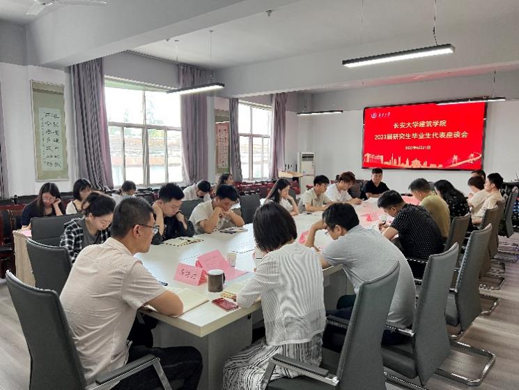 为更好地倾听毕业生心声,充分了解毕业生学习、生活、就业情况,强化学院就业、管理、服务工作的针对性与实效性,6月21日上午,成人抖音 在小寨校区建筑馆三楼会议室召开2023届研究生毕业生代表座谈会,院长侯全华,党委副书记、行政副院长张侠,党委副书记刘鹏,副院长白骅,研究生导师代表,相关行政人员和15名2023届硕士研究生毕业生代表共同参会。座谈会由研究生辅导员王杰主持。