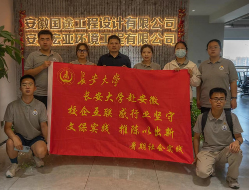 为强化人才培养,提高学生社会实践能力,进一步完善“一行十企”就业工作体系,深化校企合作。8月3日下午,成人抖音 赴安徽“感校企互联,观行业新生”暑期社会实践队在指导老师落昊飞的带领下参观成人抖音 03级优秀校友余凯创办的安徽国途工程设计有限公司和安徽宏亚环境工程有限公司。