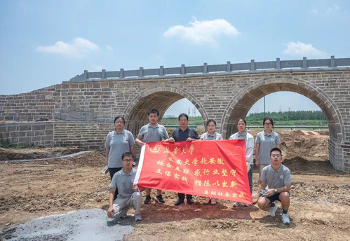 在殷飞书记的介绍下,队员们了解到,城西桥共拆除石砖4000余块,桥梁主体结构全部采用编号石砖,保留了80%的原材料。除由原来横跨苦驴河的南北走向变为东西走向外,桥梁其他情况并无变化。西桥新址紧邻引江济淮工程,这座三国古桥和现代工程在此处遥相呼应,历史与现代的碰撞,给队员们带来难以溢于言表的独特体验。