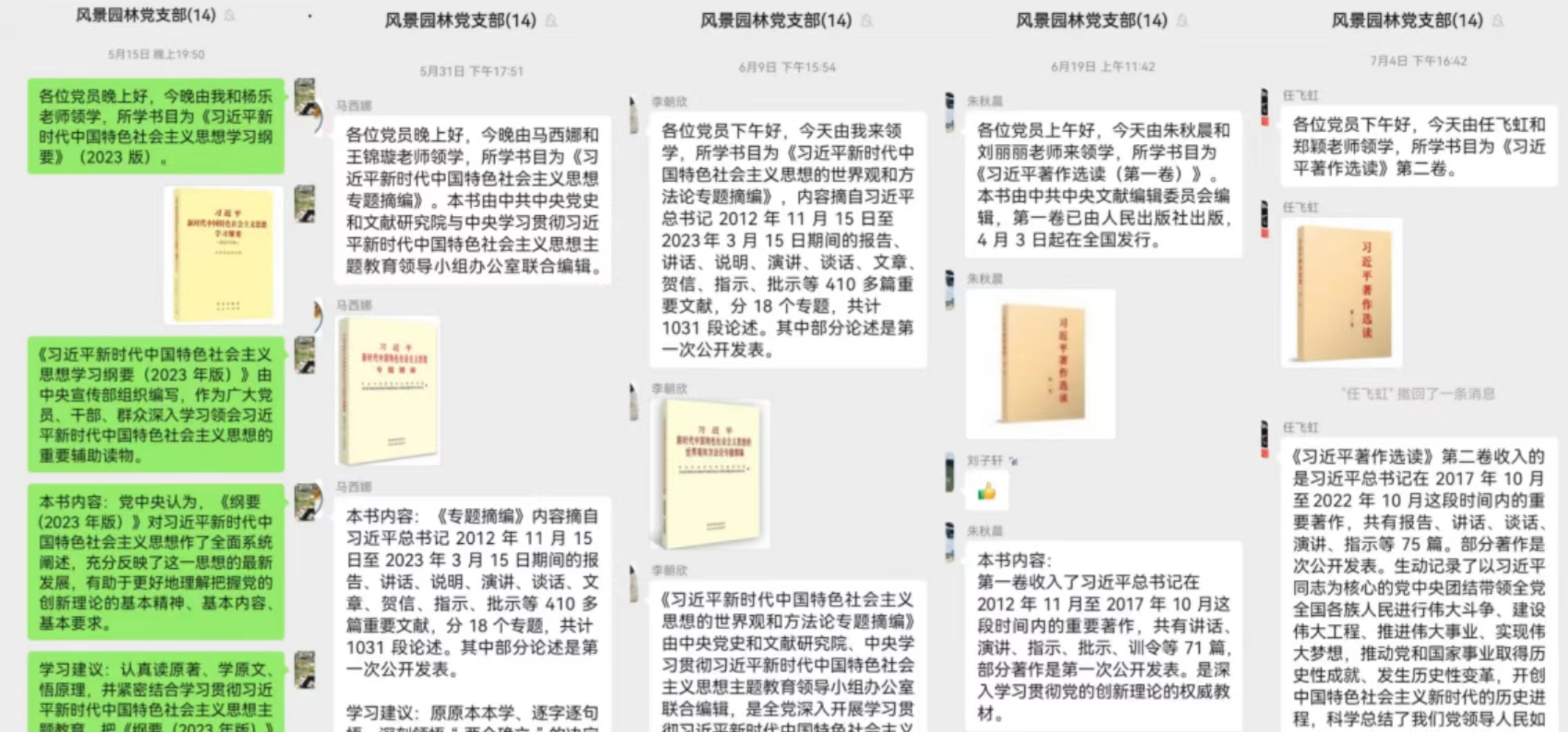 为全面学习贯彻习近平新时代中国特色社会主义思想,成人抖音 风景园林党支部把主题教育专题党课作为学习贯彻落实全会精神的一项重大任务,统筹安排,从5月中旬起至8月上旬,通过线上线下混合、党员轮流领学的方式,每二周开展一次党课学习,共完成主题教育专题党课10余次。学习了《习近平新时代中国特色社会主义思想学习纲要 (2023 版)》,《习近平新时代中国特色社会主义思想专题摘编》,《习近平新时代中国特色社会主义思想的世界观和方法论专题摘编》,《习近平著作选读(第一卷)》,《习近平著作选读(第二卷)》,《习近平关于调查研究论述摘编》,《论党的自我革命》等7本著作。