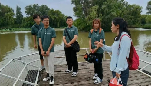在调研过程中,实践队员首先对湿地公园内的植物进行观察和记录,通过了解湿地公园中植物的生态特性、分布情况,进一步认识湿地生态系统的复杂性和生物多样性。同时,带队老师关宇还给同学们讲解了湿地公园植物搭配的相关知识,帮助大家了解湿地植物的生态功能。