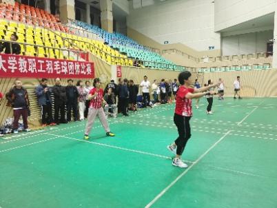 2023年教职工羽毛球团体比赛在南校区北院体育馆举办,来自学校26个分会的26支代表队参加比赛。