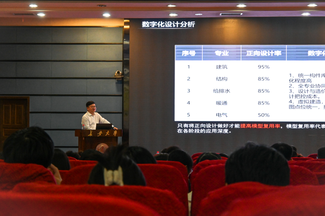 严石副院长讲述了建筑行业剧变背景下的从业现状以及数字化技术在行业内应用现状,具体剖析了“数字化”的定义及三层理解。