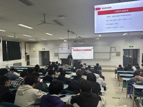 首先,刘旭东老师从考试的重要性入手,向同学们明确了考试的目的和作用。考试是学生学习成果和学习状况的真实反映,考试成绩不仅为学生自己的学业规划提供参考,也能让老师了解教学成果,及时改进教学计划和方法。因此,考试必须诚信为先,不诚信的考试会让考试失去其本来意义。