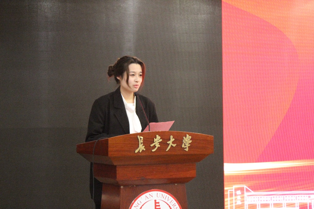 获奖学生代表周圣凡发言,她对齐铁营校友表达了衷心的感谢,并表示一定会学好专业知识,练就过硬本领,以实际行动为学校和学院的发展建设贡献力量。