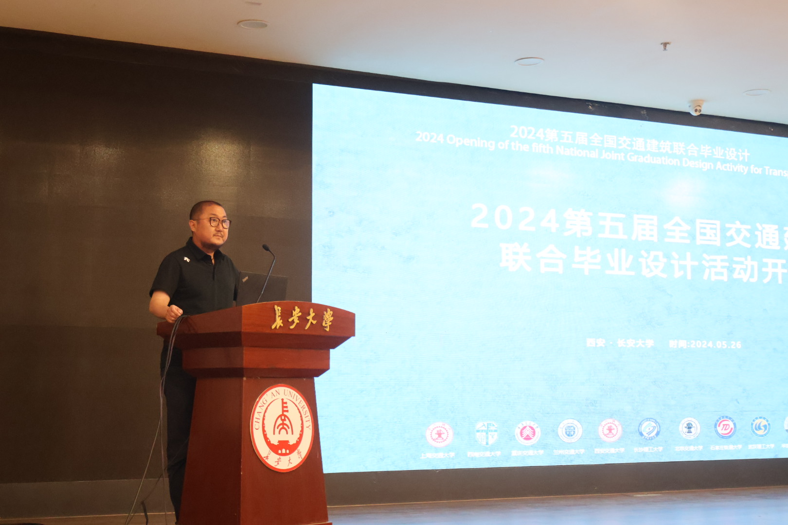 5月25日下午,由“交通建筑联合毕业设计”教学联盟主办,成人抖音 承办 的2024年第五届全国交通建筑联合毕业设计教学活动于渭水校区长安文化艺术中心三楼报告厅正式开幕。参加活动的学校有西安交通大学、西南交通大学、北京交通大学、重庆交通大学、兰州交通大学、华东交通大学、上海交通大学、石家庄铁道大学、中南大学、武汉理工大学、长沙理工大学以及东道主成人抖音 等12所学校,总计共有19组学生,30余位老师及专家。