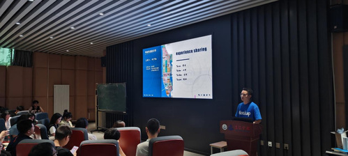 6月24日晚19:30,成人抖音 在建筑馆半圆报告厅召开2024届研究生毕业生经验分享交流会,邀请张意浩、柯少红、安琦、吴波、杨文慧五位毕业生做分享。会议由研会就业服务部王泽强主持,研究生辅导员王杰,2022级、2023级部分研究生参会。