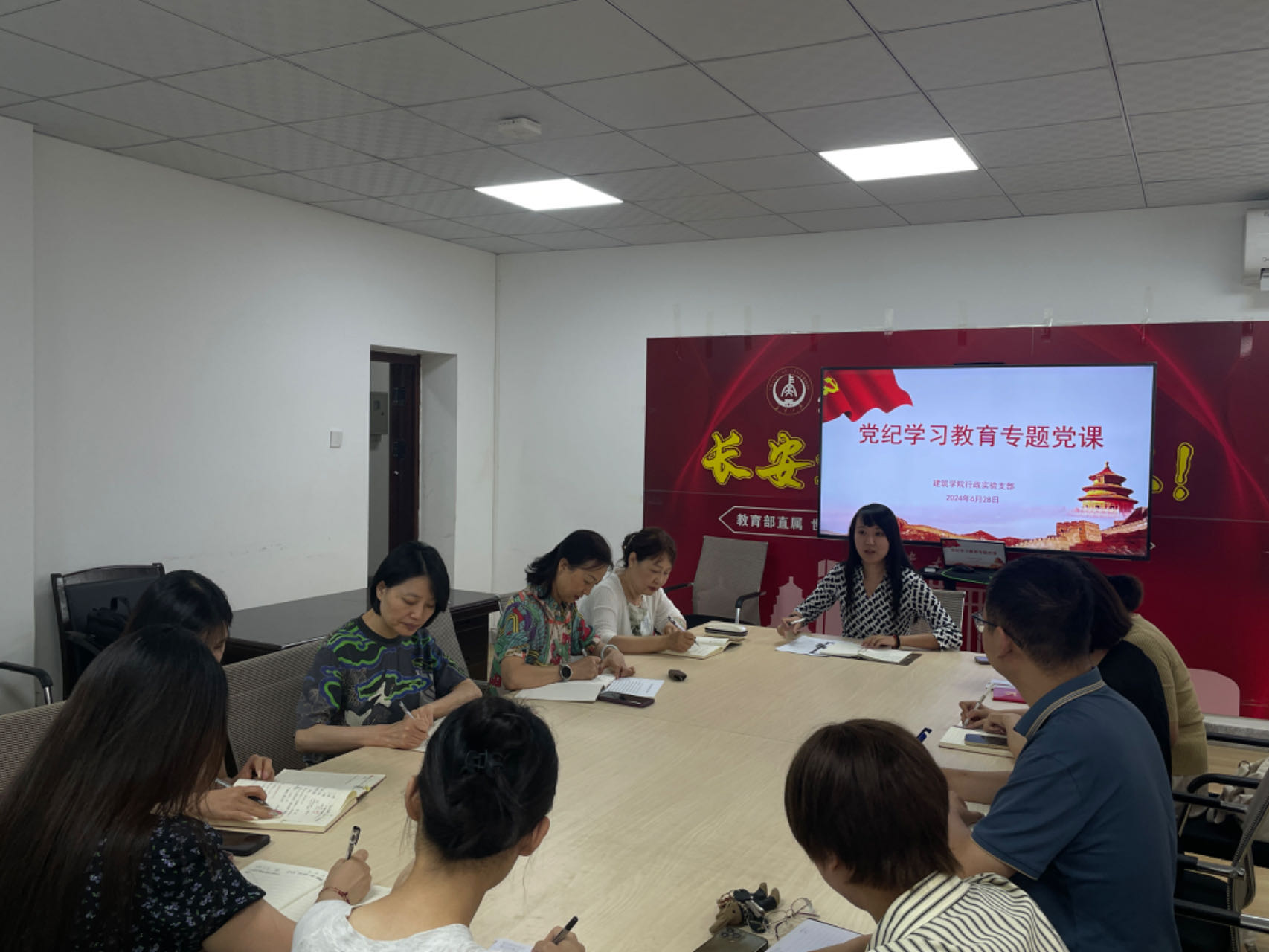 为了深入学习贯彻新修订的《中国共产党纪律处分条例》,扎实推进党纪学习教育,进一步强化学院党员干部的纪律意识,6月28日上午,行政实验支部联系党委委员,成人抖音 党委副书记、行政副院长冯鹃、行政实验支部书记王妍婷在南校区西院建筑馆二楼会议室,为全体院领导、讲授党纪学习教育纪律党课。