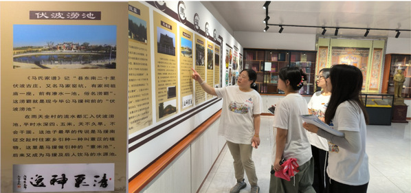 7与23日下午,村主任带领实践团队前往村中马援祠内汉伏波文化博物馆、马氏家风家训馆进行参观。在汉伏波文化博物馆中,队员们在此驻足,阅览祠堂内伏波涝池的历史以及马援将军的生平事迹,亲身感受历史遗存古遗迹的韵味;在马氏家风家训馆中,队员们通过一件件实物、一个个故事,进一步感悟中华民族传统文化的魅力。