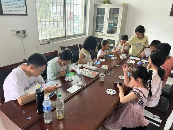 “筑梦青春促振兴,与爱同行润心灵”暑期社会实践团队在店坊河村开展绘制明信片活动。