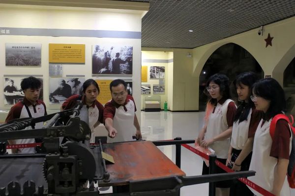 指导教师周艳龙为实践队成员们讲解了印刷机的基本构造,讲述了过去革命时期报社活字排版印刷的过程。实践队员们在周老师的娓娓道来中体会到印刷工作的繁琐,也领悟到革命时期新闻工作者的不易。