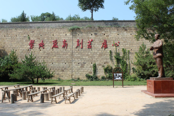在鲁迅艺术文学院旧址背后的小广场上,实践队员们还见到了毛泽东同志为鲁迅艺术文学院题写的校训——“紧张、严肃、刻苦、虚心”。工作人员补充说道:“毛泽东同志还曾为鲁艺题词‘抗日的现实主义、革命的浪漫主义’。”