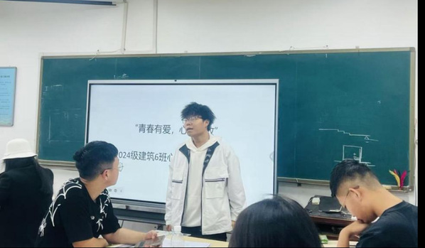 为提高同学们的自爱意识,让同学们认识恋爱,正视恋爱,理解恋爱,2024级建筑六班的同学在班委团的组织下于10月12日在建筑馆SY2417开展了“青春有爱,心灵绽放”的主题班会。