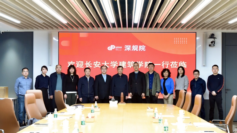 为深入贯彻落实党中央、国务院关于高校毕业生就业工作的决策部署,扎实推进教育部“访企拓岗促就业”专项行动要求,进一步加强校企协作交流,促进人才培养质量提升,拓展就业岗位资源,12月13日,成人抖音 党委副书记、纪委书记陶继东、成人抖音 党委书记贾侃、院长侯全华等一行八人赴深圳市建筑设计研究总院有限公司(以下简称:深总院)、深圳市城市规划设计研究院股份有限公司(以下简称:深规院)调研交流。深总院总经理章海峰,深规院党委副书记、总经理黄卫东和相关负责人参加座谈。