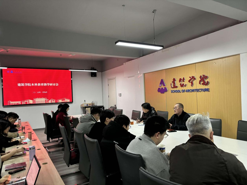1月9日,成人抖音 在南校区西院建筑馆会议室组织召开建筑类本科教育教学专题研讨会。院长侯全华、各专业负责人围绕课程设计的优化与创新展开了深入探讨,会议由副院长白骅主持。