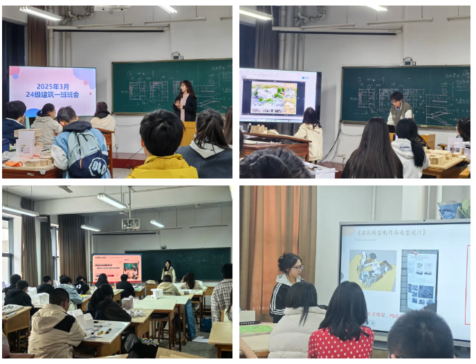 2024级各班于3月集中开展系列主题班会。各班级朋辈导师立足专业特色、紧扣学生需求,通过集中宣讲、经验分享、互动答疑等形式,就建筑类各专业特色、课程设置、发展前景等学生关切的问题进行了系统讲解,针对各班同学提出的问题进行了全面的交流解答。