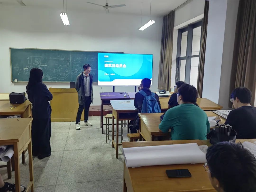 随后,段艺凡老师就即将到来的建筑日活动进行动员。他详细介绍了建筑日活动的流程、活动内容以及参与意义。建筑日不仅是展示专业成果的平台,更是与其他专业同学交流学习的好机会。段老师强调,希望同学们积极筹备,充分发挥自身专业优势,精心准备展示作品,以饱满的热情和积极的态度参与到活动中来,展现风景园林专业的独特魅力。