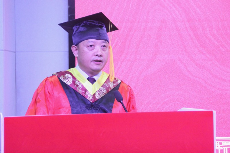 陶继东代表学校向即将踏上崭新征程的毕业生们表示热忱祝贺,向教职工、家长及亲友对全体学生的倾心支持与悉心培养致以谢意!他在讲话中提出三点期望:一、心怀“国之大者”,将小我融入大我,做强国建设的奋斗者;二、深耕建筑行业,将专业变成事业,做乡村振兴的贡献者;三、坚持主动求变,将学习变成习惯,做锐意进取的拼搏者。