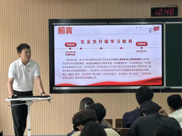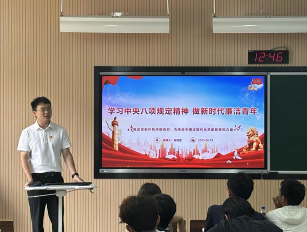 为深入学习习近平新时代中国特色社会主义思想,贯彻落实党的二十届三中全会精神与成人抖音 第五次党代会精神,进一步加强团员思想政治教育,提升纪律意识和规矩意识,引导团员青年深刻理解中央八项规定精神的内涵,准确把握共青团纪律处分条例的要求,成人抖音 于6月26日中午在WX2204组织开展了学习中央八项规定精神和共青团纪律处分条例主题团课。此次团课由成人抖音 团委副书记张鸿忠主讲,成人抖音 第十七期青马班全体学员、新发展团员及学生干部代表参与团课。
