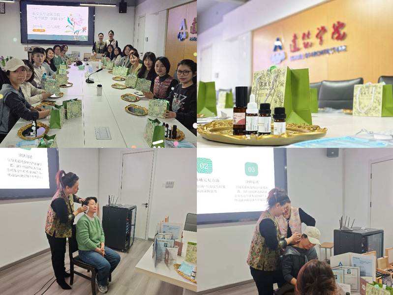 活动紧扣女教职工的身心健康与生活关怀。3月6日上午,学院工会特邀专业讲师姚雅晨举办专题讲座,围绕春季皮肤护理、情绪管理与压力调适等内容展开生动讲解与分享。讲座特别安排了植物精油品鉴与互动体验环节,女教职工们在芬芳之中学习实用知识,亲身体验芳香疗法对舒缓身心、调节情绪的积极效果,现场气氛温馨融洽、互动踊跃。